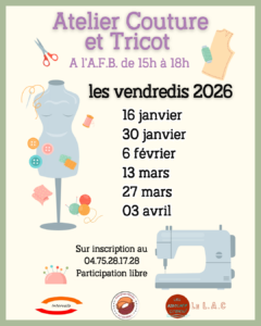 - L’atelier couture/tricot reprend !L’atelier couture/tricot : les dates 2026 !
