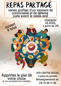 - Repas partagé à l’AFBLe rendez-vous gourmand et convivial POUR TOUS Chacun apporte un plat salé ou sucré à partager, et …