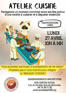 - Atelier cuisine et dégustationL’atelier cuisine est de retour, et en version améliorée! L’idée est de cuisiner ensemble un plat et …