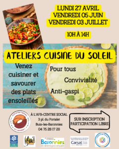 - Atelier cuisine et dégustationL’atelier cuisine est de retour, pour les beaux jours! L’idée est de cuisiner ensemble un plat et …