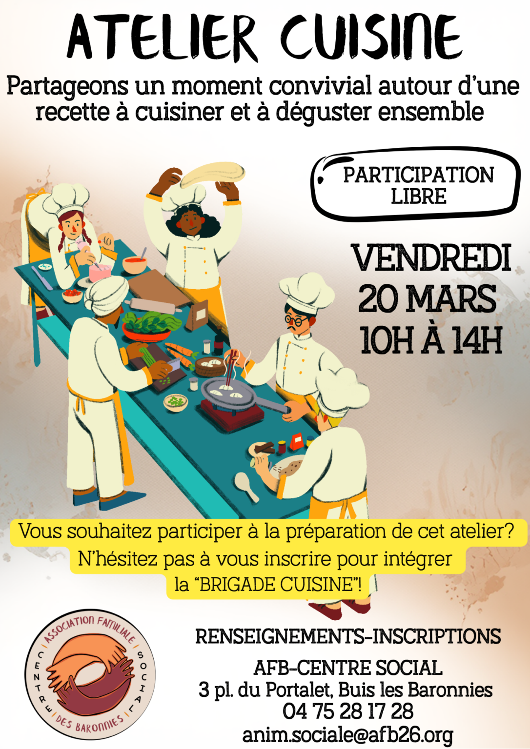 L’atelier cuisine est de retour, et en version améliorée! L’idée est de cuisiner ensemble un plat et un dessert et de les déguster avec gourmandise! Pour celles et ceux qui …