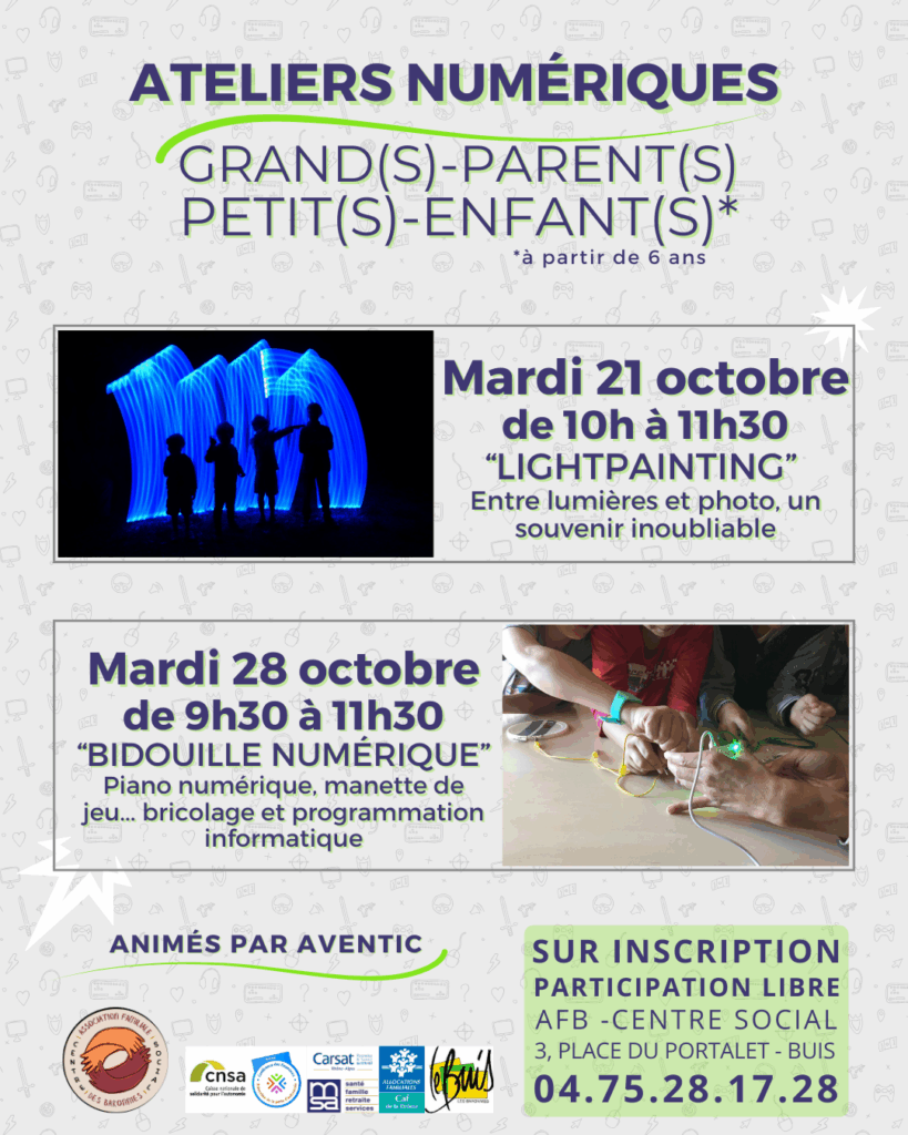 Ateliers animés par l’association Aventic. Petits-enfants, à partir de 6 ans