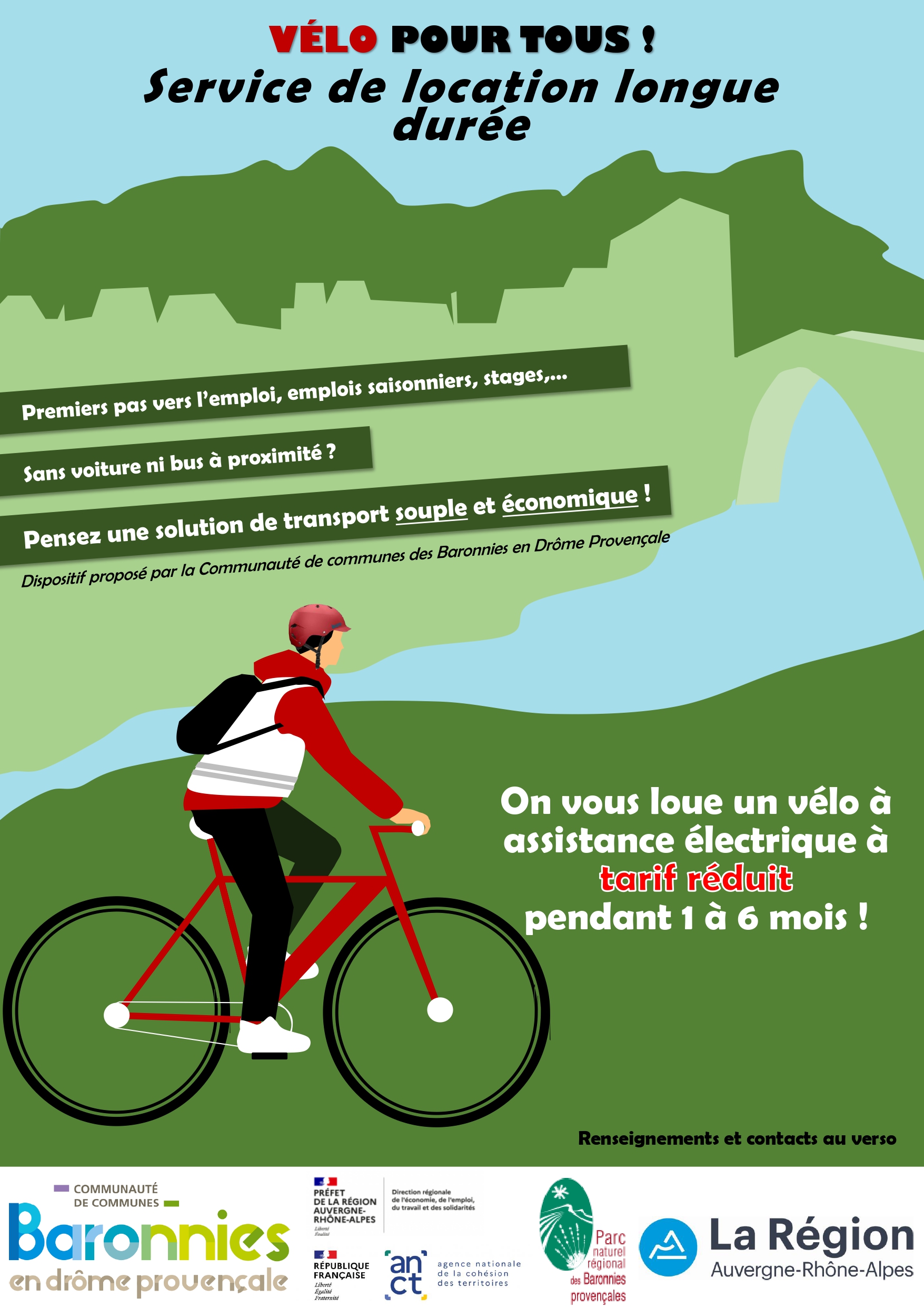 Une mise à disposition longue durée de vélos électriques, à tarif réduit, pour les personnes rencontrant des problèmes de mobilité pour se rendre à un emploi ou un stage.